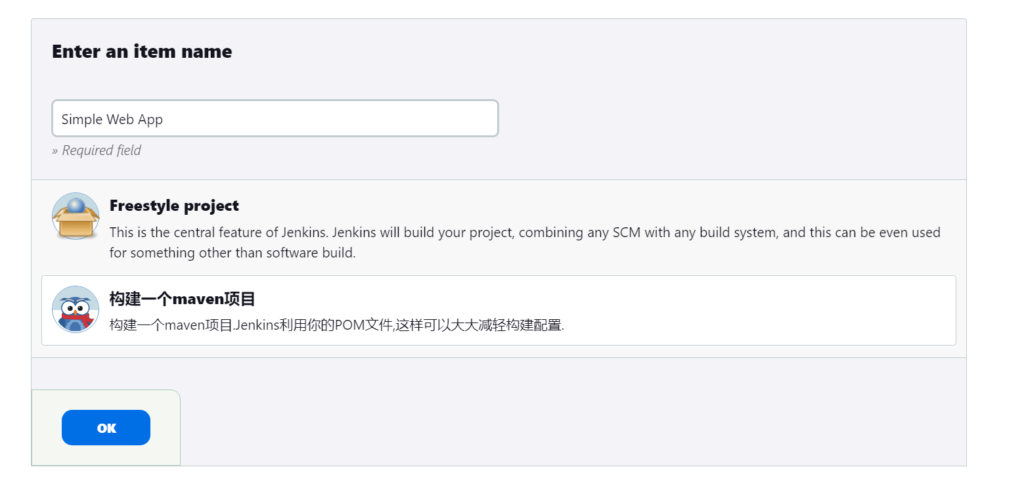 在“Dashboard”下,点击“Create a Job”创建一个任务,类型选择构建一个Maven项目。