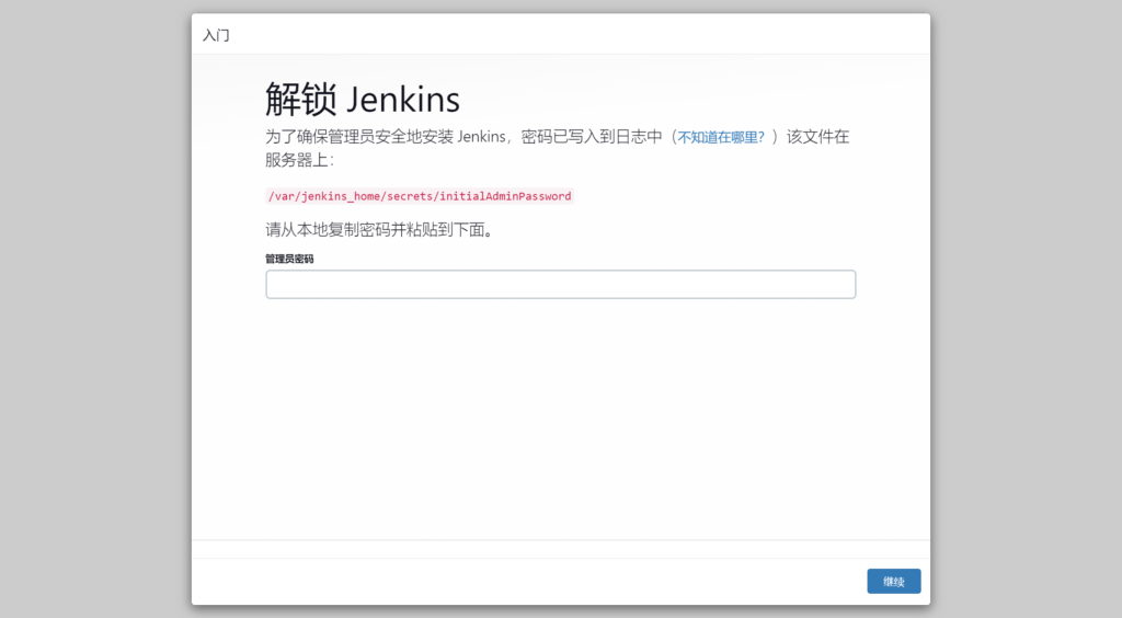 复制 {Jenkins Home}/secrets/initialAdminPassword 中的密码以root身份登录Jenkins。